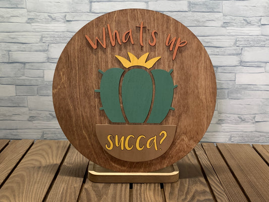 Whats Up Succa - Round Wood Wall Hanger Door Sign
