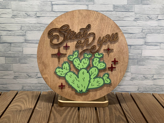 Stuck on You - Round Wood Wall Hanger Door Sign