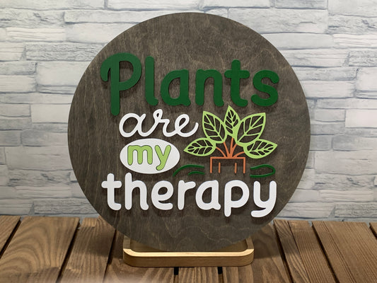 Plants are My Therapy - Round Wood Door Hanger Wall Sign