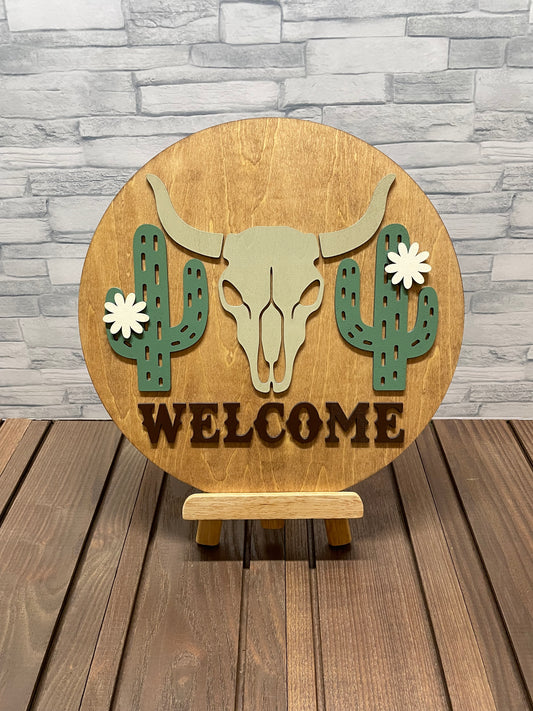 Western Cactus Welcome Round Wood Wall Sign Door Hanger