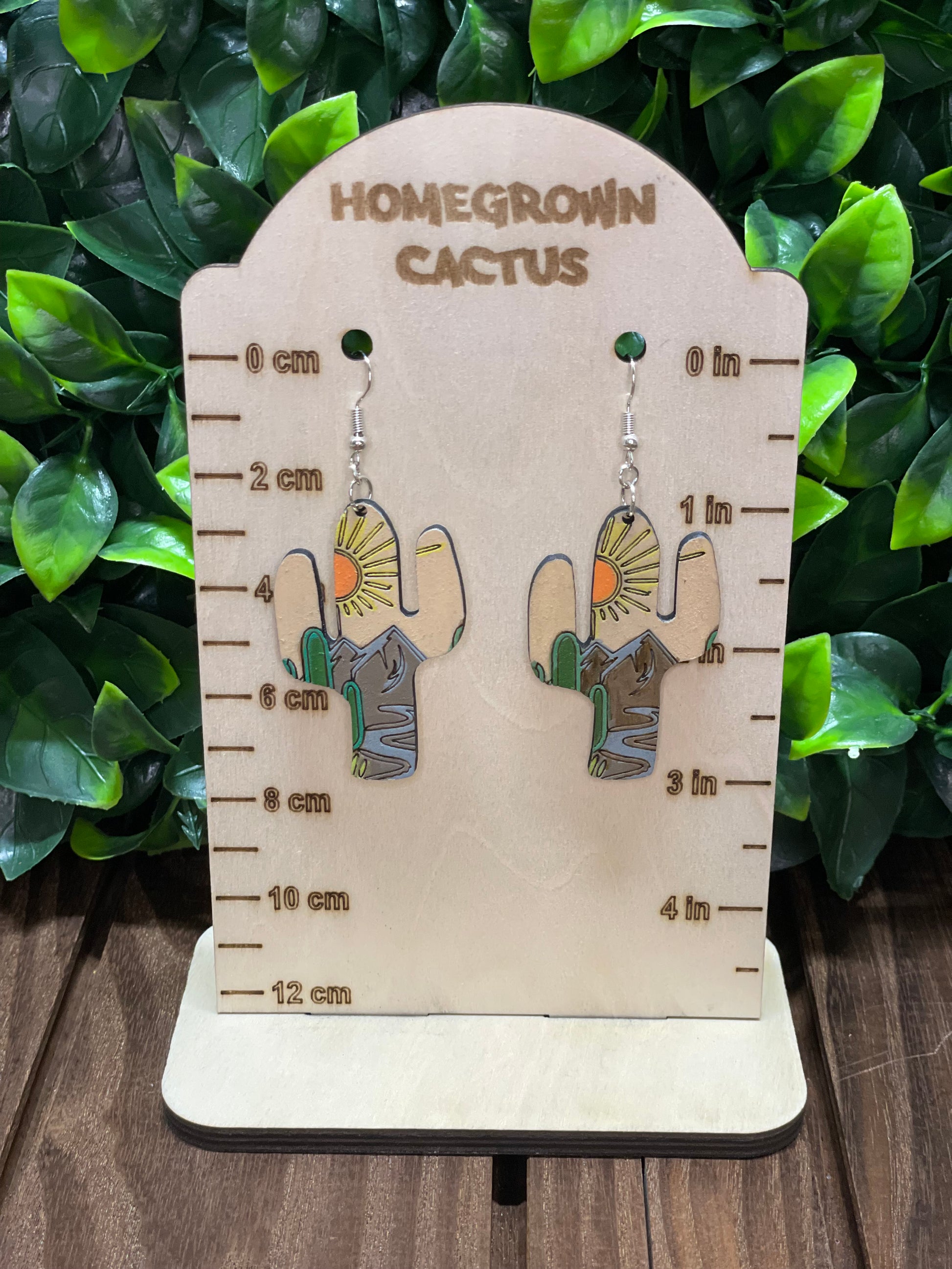 Cactus Shaped Desert Scene Laser Earrings