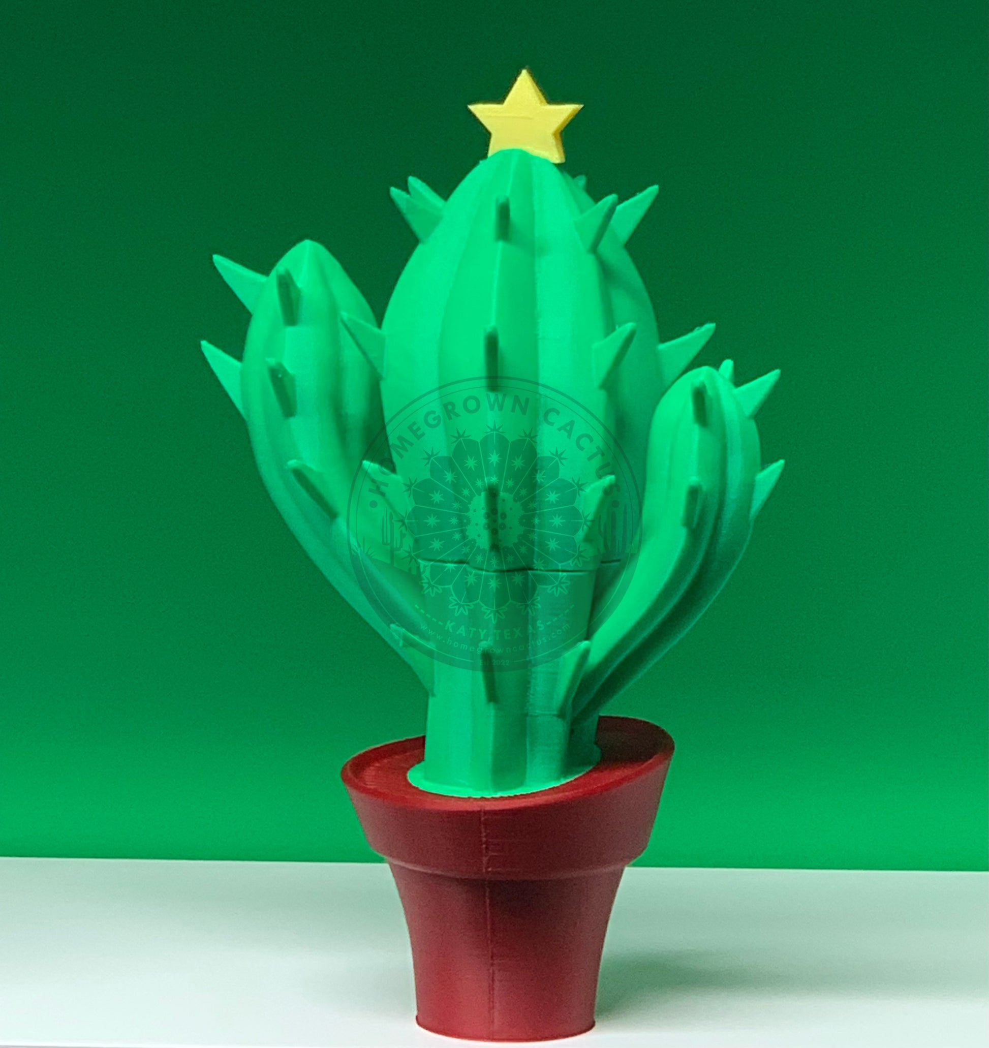 Christmas Cactus Tree, roughly 10" tall and 6" wide. Some assembly and gluing required.
