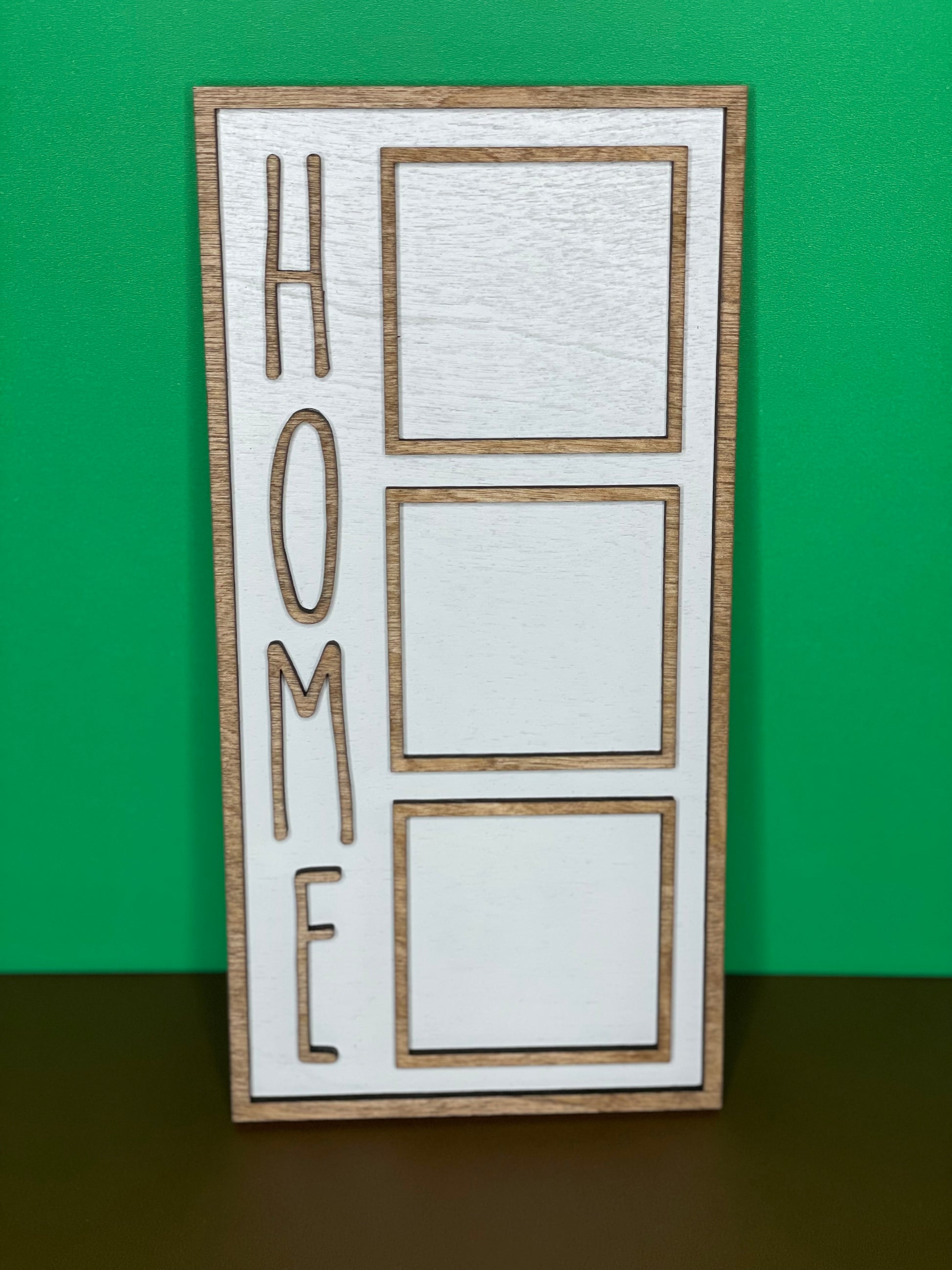 This listing is for a Square 3 Frame Mini HOME Sign Backer Only.