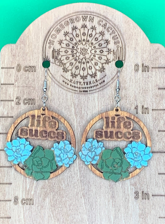 Welcome Succas - Succulent Bowl Laser Cut Round Wood Door Hanger Wall Sign.